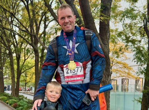 “The New York Marathon was a fantastic experience with superb support every step of the way. It was very hot running in the Captain America costume – chosen by my four-year-old son – but I made it round in just over 4 hours 30 minutes. I’d like to thank everyone who donated and sponsored me. I’m blown away by the generosity. It’s really appreciated, and I’m so grateful for all the support.”